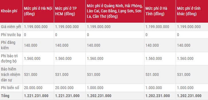| VF8 Plus | 1.199.000.000 |