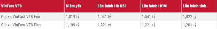 | VF8 Eco | 1.019.000.000 |